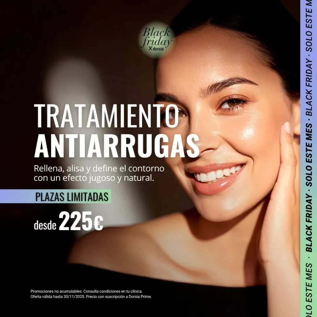 No importa qué zona de tu rostro o cuerpo quieras mejorar. Nuestros tratamientos de vanguardia para rejuvenecer tu piel, aportar firmeza, luminosidad e hidratación se adaptan a cualquier edad, necesidad y tipo de piel. Contorno de ojos, frente, entrecejo, patas de gallo… ¡Tú decides! Nunca es demasiado pronto -o tarde- para empezar a prevenir y tratar los signos de la edad. ¿Qué mejor época para verte radiante que Navidad y fin de año? ¡Comenzar 2026 con tu confianza renovada no tiene precio! Consíguelo con el Black Friday de Clínicas Dorsia. Descuentos exclusivos para acabar el año ofreciendo la imagen que deseas ser.