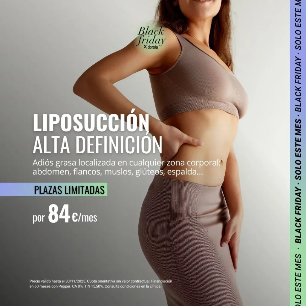 Si tus necesidades van más enfocadas al cuerpo y a moldear ciertas zonas con las que no te sientes del todo feliz, nuestros tratamientos de cirugía corporal te ayudarán a esculpir tu silueta con técnicas innovadoras que no dañan los tejidos. Di adiós a la grasa abdominal y consigue una piel más tensa, con resultados naturales y duraderos, que debes mantener con unos hábitos de vida saludable, ¡por supuesto! Gracias al Black Friday de Clínicas Dorsia, podrás disfrutar de tus curvas ideales, siempre junto a nuestros expertos en remodelación corporal.