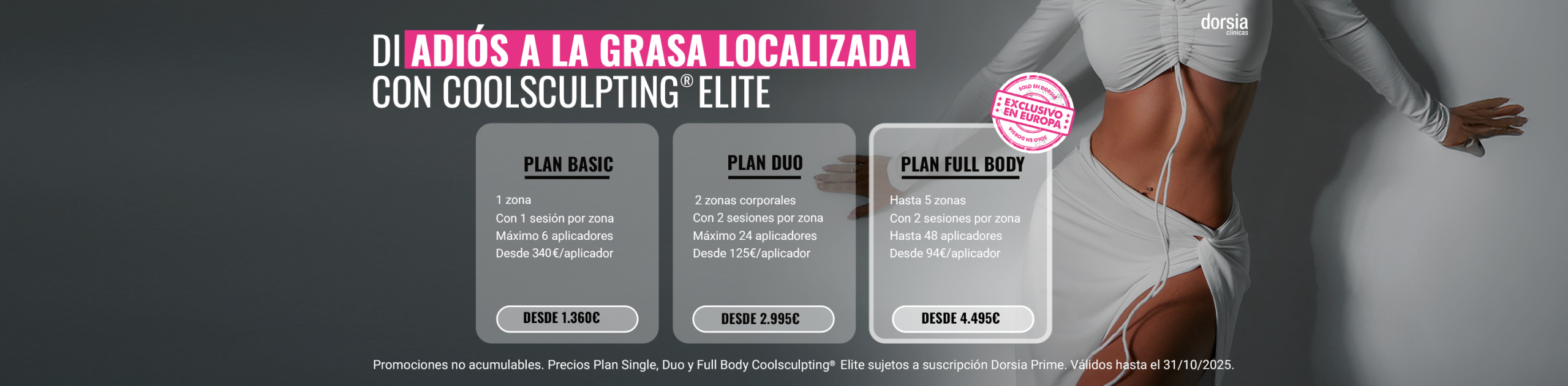 El dispositivo Coolsculpting Elite es la nueva liposucción sin cirugía con criolipólisis médica. Reducción de grasa sin intervención quirúrgica. Descubre ahora nuestro Plan Dúo y Plan Full Body exclusivo en Europa.